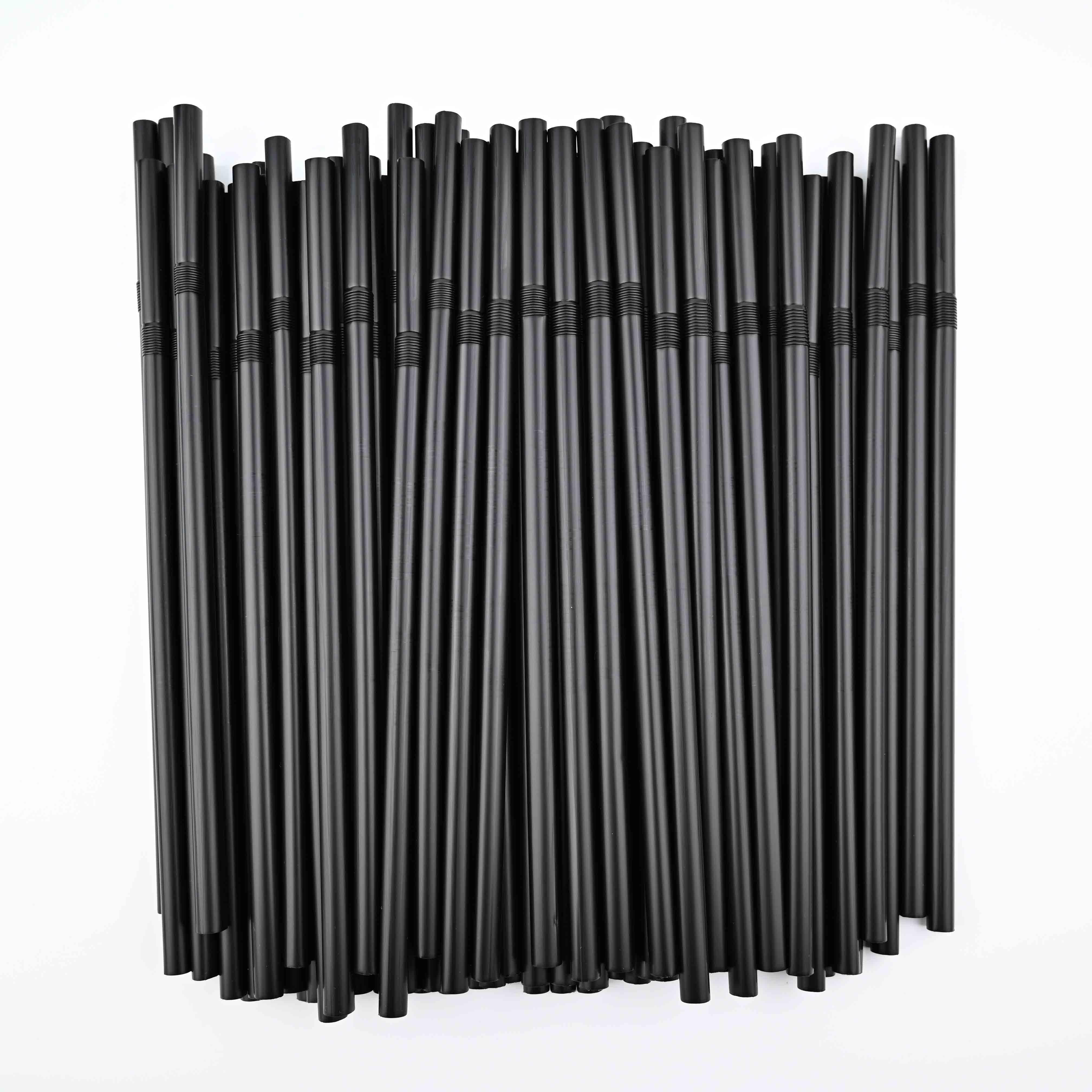 Black Flexible Plastic Drinking Straws 8 MM Individual PE Fi...